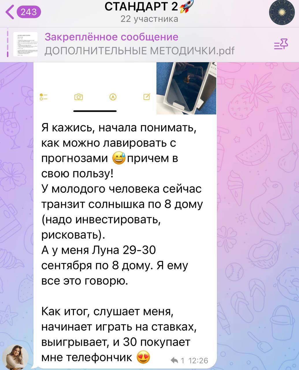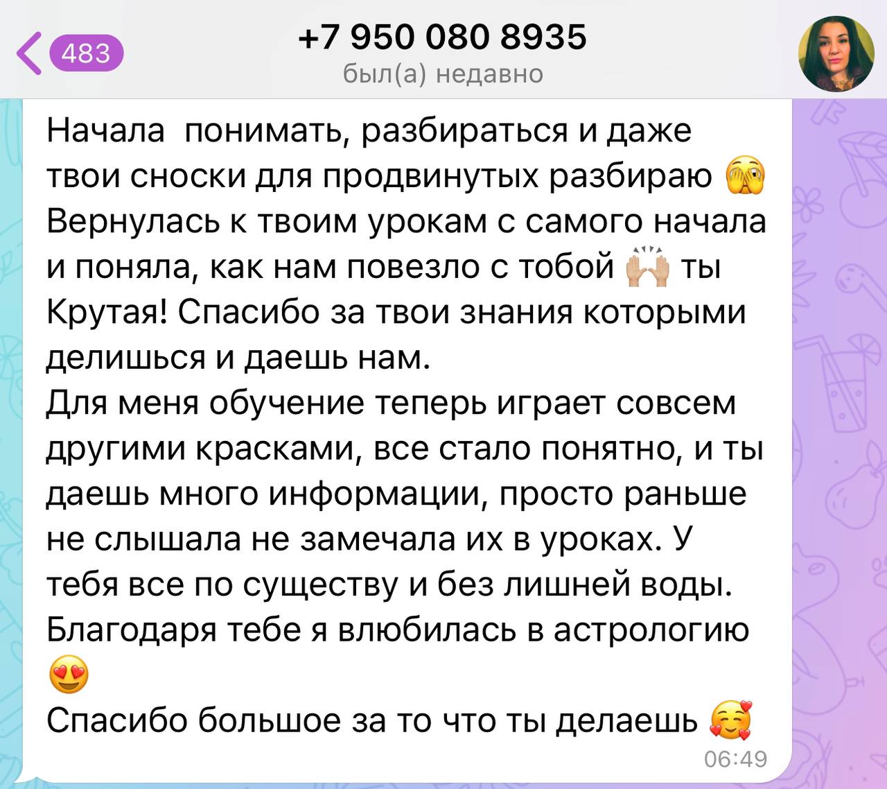 Обратная связь от практикующего астролога в чате 3 месяца